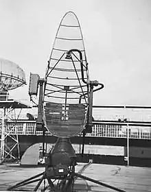 Developed by MIT's Radiation Laboratory, this height-finding radar was nicknamed "Beaver Tail." The radar was designed to be used in conjunction with the SCR-270 and SCR-271 search sets. The CPS-4 required six operators. This S-band radar, operating in the 2700 to 2900 MHz range, could detect targets at a distance of ninety miles. The vertical antenna was twenty feet high and five feet wide. This radar was often paired with the AN/FPS-3 search radar during the early 1950s at permanent network radar sites.