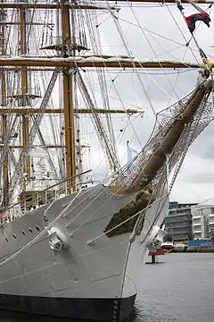 Detail of the bowsprit and the figurehead while docked at Mar del Plata Naval Base in 2010