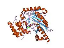 In molecular biology, the ATP:guanido phosphotransferase family is a family of structurally and functionally related enzymes,[1][2] that reversibly catalyse the transfer of phosphate between ATP and various phosphogens. The enzymes belonging to this family include: