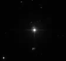 AU Microscopii (AU Mic) is a young small star located about 32 light-years (9.8 parsecs) away – about 8 times as far as the closest star after the Sun.[5] The apparent visual magnitude of AU Microscopii is 8.73,[2] which is too dim to be seen with the naked eye. It was given this designation because it is in the southern constellation Microscopium and is a variable star. Like β Pictoris, AU Microscopii has a circumstellar disk of dust known as a debris disk and at least one exoplanet.