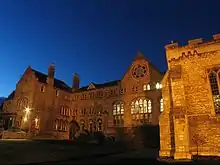 Michael Tippett was born in London in 1905, to well-to-do though unconventional parents. His father, a lawyer and businessman, was a freethinker, his mother a writer and suffragette.[1] He received piano lessons as a child, but first showed his musical prowess while a pupil at Stamford School in Lincolnshire, between 1920 and 1922. Although the school's formal music curriculum was slight, Tippett received private piano tuition from Frances Tinkler, a noted local teacher whose most distinguished pupil had been Malcolm Sargent, himself a former pupil at Stamford. Tippett's chance purchase in a local bookshop of Stanford's book Musical Composition led to his determination to be a composer, and in April 1923 he was accepted as a student at the Royal College of Music (RCM).[2] Here he studied composition, first under Charles Wood (who died in 1926) and later, less successfully, with Charles Kitson. He also studied conducting, first under Sargent and later under Adrian Boult. He left the RCM in December 1928, but after two years spent unsuccessfully attempting to launch his career as a composer, he returned to the college in 1930 for a further period of study, principally under the professor of counterpoint, R. O. Morris.[1]