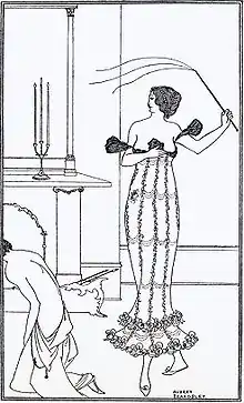 A Full and True Account of the Wonderful Mission of Earl Lavender, which Lasted One Night and One Day; with a History of the Pursuit of Earl Lavender and Lord Brumm by Mrs. Scamler and Maud Emblem, is a comical novel, written by Scots poet and playwright John Davidson, published in 1895.[1] The story is set in contemporary London (late 19th century) and tells the story of two male friends who are testing Earl Lavender's own version of 'The Theory of Evolution'. It includes two scenes of flagellation. The book is better known for its frontispiece by Aubrey Beardsley, which does not depict any described scene in the book, than it is for its actual text.