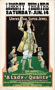 A Lady of Quality is a 1924 American silent historical drama film directed by Hobart Henley and starring Virginia Valli. Produced and distributed by Universal Pictures, it was based on the novel A Lady of Quality by Frances Hodgson Burnett. Previous adaptations include the film A Lady of Quality (1913).[1][2]