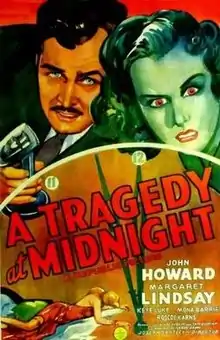 A Tragedy at Midnight is a 1942 American comedy film directed by Joseph Santley and written by Isabel Dawn. The film stars John Howard, Margaret Lindsay, Roscoe Karns, Mona Barrie, Keye Luke and Hobart Cavanaugh. The film was released on February 2, 1942, by Republic Pictures.[1][2][3]