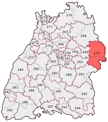 Aalen – Heidenheim is an electoral constituency (German: Wahlkreis) represented in the Bundestag. It elects one member via first-past-the-post voting. Under the current constituency numbering system, it is designated as constituency 270. It is located in eastern Baden-Württemberg, comprising the Heidenheim district and the eastern part of the Ostalbkreis district.[1]