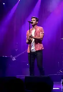 Tveit stars as Christian in the Broadway production of Moulin Rouge! at the Al Hirschfeld Theatre; previews began on June 28, 2019, and the production had its opening night on July 25.[64] Tveit has been universally praised for his portrayal; New York Times theater critic Ben Brantley said that Christian was "a role [Tveit] was born to play" during the Boston run of the show and later said that his 'passionate and uncompromising' performance was his "best Broadway work to date".[65][66][67] The production was put on hold, beginning on March 12, 2020 due to the COVID-19 pandemic, and on March 23, Tveit became the first Broadway star to announce a positive COVID-19 test result.[68][69][70] He was one of at least four cast members who contracted the virus.[71] In October 2020, he was nominated for the Tony Award for Best Performance by a Leading Actor in a Musical, one of the musical's fourteen nominations. Although not the only eligible actor in the category, he made history as the sole nominee for his category.[72] As the sole nominee, he is the presumptive winner but needs an affirmative vote by 60% of Tony voters to confirm it.[73]