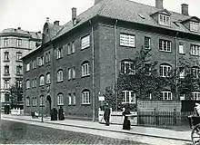 Abel Cathrines Stiftelse is a symmetrical, four-winged building constructed in red brick.[3] It was listed in 1980.[4] In the vestibule inside the main entrance are two plaques: one of them reads :"Abel Cathrine oprettede som enke efter proviantskriver Hans Hansen ved testamente af 27. December 1675 denne stiftelse til bolig for fattige, syge og sengeliggende mennesker. Hun døde den 1. Januar 1676. Hendes navn bevares i taknemmelig hukommelse." and the other one reads "Abel Cathrines boder var i Dronningens Tværgade fra 1676 -1885. Ved Magistratens omsorg og med kommunens hjælp flyttedes stiftelsen til denne bygning, der tages i brug den 31 oktober 1886: Guds nåde være over dette hus og dem som bor deri.".[5]
