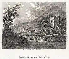 In 1404, during the rebellion of Owain Glyndŵr, the town of Abergavenny was sacked and burned by Welsh forces.[6] The fortified, or barbican, gatehouse — described by architectural historian John Newman as "unimpressive"[3] — may date from either just before, or just after, that date.[5]