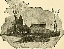 In 1896, the Washington, Alexandria and Mount Vernon Railway began to run electric trolleys beside the abandoned Alexandria Canal west of Abingdon.[52][53] By 1902, the railway was distributing a booklet for tourists that described Abingdon and other historic sites along its route.[54] The booklet illustrated a house at Abingdon (identified as the "birth-place of Nellie Custis") that reportedly stood on the bank of Potomac River, a mile east of the railway's tracks beyond a brickyard.[55]