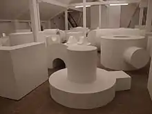 In 1987 he immigrated to Paris, and moved to the home of his uncle Jacques Ohayon which was located on Temple Street (Rue de Temple) in the Third Arrondissement of Paris. Eshel through Ohayon met several artists such as Christian Boltanski and Annette Messager. He began studying art at the École Nationale Supérieure d'Arts Paris-Cergy (ENSAPC) and attended the weekly Boltanski class at the École nationale supérieure des Beaux-Arts (ENSBA)[2] during this period, he adopted the name "Absalon", a nickname given to him by one of his uncle's friends and referred to the biblical Absalon.[4] In 1989 he received a one-year scholarship to study at the Institut des Hautes Études en Arts Plastiques in Paris. In 1990 he was represented by the Galerie Chantal Crousel. In the same year he was introduced to the curator Yona Fischer by Christian Boltanski, who invited him to exhibit in Israel at the Artists Studios, Aika Brown Gallery, Jerusalem, it was the first time he returned to Israel since moving to Paris.[2] In 1991 Absalon moved to live in the Villa Lipchitz (Jacques Lipchitz) in Boulogne built by Le Corbusier in 1923–24.[5] In 1993 Absalon planned to live in the six cells he designed for six cities,[5] on October 10, 1993 Absalon died from an illness associated with HIV, at the age of 28.[4]