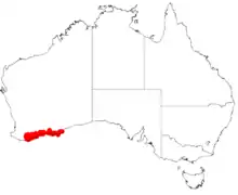 It is found along the south coast of Western Australia in the Great Southern and Goldfields-Esperance regions extending from around Albany east to Cape Arid National Park where it grows among granite outcrops and flats near creeks in sandy soils.[1]