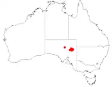 It is found in South Australia at the northern end of the Flinders Ranges from Mount Lyndhurst east as far as Arkaroola[2] in the Tirari Desert and Sturt Stony Desert regions where it is situated in gullies and on stony hillsides growing in skeletal calcareous loamy soils as a part of tall shrubland communities.[3]