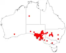 In New South Wales it is found in central and western parts on rocky ridges and along rivers and creeks as part of mallee and Callitris woodland communities.[4]