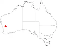 Identified from material obtained near Morawa, the known distribution range is the Yalgoo and Perenjori districts of the Eremaean Province in Western Australia.[2]