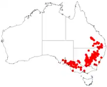 It also known to occur in south-east Queensland, north-west Mallee areas of Victoria and can be seen in south-east South Australia; with known locations including the Yorke Peninsula region and Murray region . [11]