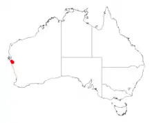 It is native to an area in the Mid West region of Western Australia that s commonly situated on sand-plains growing in yellow sandy soils where its range extends from around Shark Bay in the north to around Northampton in the south[1] in an area approximately 50 km (31 mi) north of the Murchison River where it is a part of mallee scrubland communities.[2]