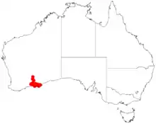 It is native to an area in the Goldfields-Esperance region of Western Australia from south of Coolgardie in the north down to around Esperance in the south where it is commonly situated on flats and plains growing in sandy, clay or loamy soils.[1] The distribution of the shrub extends as far as Cape Arid National Park in the east. It is mostly found as a part of Eucalyptus woodland or open shrubland communities.[2]