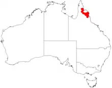 It is native to an area of far north Queensland where it is commonly situated in granitic sandy beds of seasonally dry creeks or other watercourses which tend to regularly be inundated by floodwaters.[1]