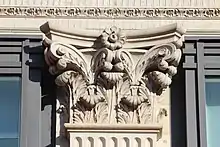 The shape of the leaf of this plant inspired the ancient Greek sculptor Callimachus (5th c. BCE) to model the capital of the Corinthian column. Since then, the Corinthian order column has been used extensively in Greco-Roman[15] and Classical architecture. For centuries, stone or bronze stylized versions of acanthus leaves have appeared as acanthus decorations on certain styles of architecture and furniture.[16] Virgil described Helen of Troy as wearing a dress embroidered with Acanthus leaves.[17]