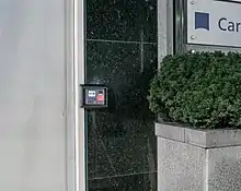 - An access-controlled entry, such as a door, turnstile, parking gate, elevator, or other physical barrier