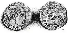 A large and prosperous city named "Caenae" (Assur[52][53]) which was seen on the opposite (west) bank of the Tigris River.[54] From this city, the barbarians (Assyrians) brought over loaves, cheeses and wine, crossing upon rafts made of skins.