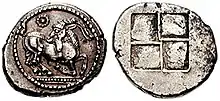 Darius's highly regarded commander, Megabyzus, was responsible for conquering the Balkans.[3] The Achaemenid troops conquered Thrace, the coastal Greek cities, and the Paeonians.[3][4][5] Eventually, in about 512/511 BC, the Macedonian king Amyntas I accepted the Achaemenid domination and submitted his country as a vassal state to Achaemenid Persia.[3][5][6][7] Megabazus received the present of "Earth and Water" from Amyntas, which symbolized submission to the Achaemenid Emperor.[8]