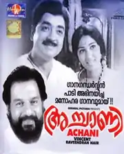 Achani (Accāṇi, English: The Axle) is a 1973 Indian Malayalam film, directed by A. Vincent and produced by K. Ravindran Nair. The film stars Prem Nazir, Nanditha Bose, Adoor Bhasi and Kottarakkara Sreedharan Nair in the lead roles. The film had lyrics by P. Bhaskaran and musical score by Devarajan. It tells the story of a tailor and the trials and tribulations of his family.[1] The film is reported to have been a commercial success and the proceeds from the film are known to have been donated by the producer for the construction of a Public Library in Kollam.[1][2] The film was adapted from Tamil stage play of same name written by Karaikudi Narayanan who later adapted the film in Tamil as same name in 1978.