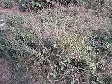Achyranthes aspera (common names: chaff-flower,[1] prickly chaff flower,[2] devil's horsewhip,[3] Sanskrit: अपामार्ग apāmārga) is a species of plant in the family Amaranthaceae. It is distributed throughout the tropical world.[4] It can be found in many places growing as an introduced species and a common weed.[5] It is an invasive species in some areas, including many Pacific Islands environments.[6]
