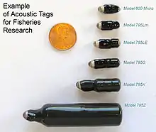 Acoustic tags are small sound-emitting devices that allow the detection and/or remote tracking of organisms in aquatic ecosystems. Acoustic tags are commonly used to monitor the behavior of fish. Studies can be conducted in lakes, rivers, tributaries, estuaries or at sea. Acoustic tag technology allows researchers to obtain locational data of tagged fish: depending on tag and receiver array configurations, researchers can receive simple presence/absence data, 2D positional data, or even 3D fish tracks in real-time with sub-meter resolution.
