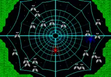 In 1993, Perri showcased Action 52 at the International Winter Consumer Electronics Show.[10] He claimed to have raised $5 million for the multicart from private backers in Europe and Saudi Arabia. Perri, along with Raúl Gomila, enlisted three college students—Mario González, Javier Pérez, Albert Hernández and a fourth developer whose name is currently unknown—to do the game design, music, graphics and programming. The developers, who used an Atari ST, were given three months to complete Action 52, leaving little time for playtesting and fixing bugs. Technical work was contracted out to Cronos Engineering, Inc., based in Boca Raton, Florida. Cronos had previously done work for IBM.[9] González, one of the programmers, says that Action 52's developers were flown to Salt Lake City, Utah, to work with a video game company there, the name of which he does not remember. However, he does recall that the company was developing an NES adaptation of Star Wars: Episode V—The Empire Strikes Back; this would identify the company as Sculptured Software. Corroborating this is Action 52's use of Sculptured Software's NES music engine.[11] Several pieces of music in the NES version of Action 52 were plagiarized from sample music composed by Ed Bogas for The Music Studio, published by Activision for the Atari ST.[12] The games with plagiarized music include Fuzz Power, Silver Sword, French Baker, Streemerz, Time Warp Tickers and Ninja Assault.