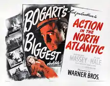 Action in the North Atlantic (also known as Heroes Without Uniforms) is a 1943 American black-and-white war film from Warner Bros. Pictures, produced by Jerry Wald, directed by Lloyd Bacon, that stars Humphrey Bogart and Raymond Massey as sailors in the U.S. Merchant Marine during World War II.[1] Typical of other films in the era, Action in the North Atlantic was created as a morale boosting film during this world war and a film that told the story of unsung heroes.[5] As noted by film critic Bosley Crowther, "... it's a good thing to have a picture which waves the flag for the merchant marine. Those boys are going through hell-and-high-water, as 'Action in the North Atlantic' shows."[6]