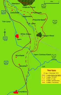 ![]() Diagram showing the front line in November 1917 (Polderhoek Spur is south of Polygon Wood) | |||||||