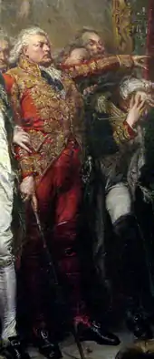 Adam Poniński (1732 or 1733 – 23 July 1798 was a Polish nobleman, Prince, one of the leaders of the Radom Confederation of 1767, Grand Treasurer of the Crown (from 1775), member of the Permanent Council, he is remembered as the infamous Marshal of the Sejm (together with Michał Hieronim Radziwiłł) of the Partition Sejm (1773–1775). Considered by many contemporaries and historians a traitor, serving Russian ambassadors, he was stripped of all titles and exiled by the decree of the Great Sejm in 1790 but restored soon afterwards by the Confederation of Targowica.