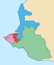 Under the Russian law, the only administrative divisions of the federal city of Sevastopol are the districts, which are the same four districts used under the Ukrainian laws.[1] Within the Russian municipal framework, however, the territory of the federal city of Sevastopol is divided into nine municipal okrugs and the Town of Inkerman.[2] While individual municipal divisions are contained within the borders of the administrative districts as to not create difficulties between various levels of governance, they are not otherwise related to those administrative districts.[2]