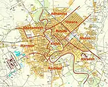 There are nine administrative districts in the city of Baghdad, the capital of Iraq, that correspond to the nine district advisory councils. The Baghdad Security Plan used these nine districts as the nine security districts. These were formed in 2003 following the 2003 Invasion of Iraq. District council members are selected from the 89 Neighborhood Advisory Councils in Baghdad.[1] The number of neighbourhood representatives on the district council is based upon the community's population. The Baghdad City Advisory Council consists of 37 members drawn from the district councils and is also based on the district's population.[2]