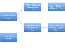 Like most civil law systems, such as Kazakhstan and Germany, Mongolia has specialized administrative courts[7] with exclusive power to hear judicial reviews. In contrast, in common-law countries like England and Singapore, judicial review actions are heard in a court of general jurisdiction like the High Court.[32]