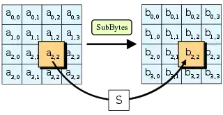 ![]() The SubBytes step, one of four stages in a round of AES | |