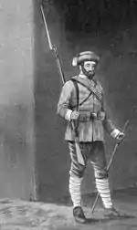 At the outbreak of the Second Anglo-Afghan War (1878–80), Ali Ahmad Jalali cites sources saying that the regular army was about 50,000 strong and consisted of 62 infantry and 16 cavalry regiments, with 324 guns mostly organized in horse and mountain artillery batteries.[11] Sedra cites Jalali, who writes that '..although Amir Shir Ali Khan (1863–78) is widely credited for founding the modern Afghan Army, it was only under Abdur Rahman that it became a viable and effective institution.'[12] In 1880 Amir Abdur Rahman Khan established a newly equipped Afghan Army with help from the British. The Library of Congress Country Study for Afghanistan states:[6]