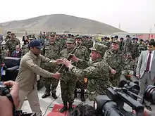 The Afghan Public Protection Force (APPF) is a Government of the Islamic Republic of Afghanistan (GIRoA) security service provider intended to protect people, infrastructure, facilities and construction projects.[1][2] The APPF is organized as a State Owned Enterprise (SOE) subordinate to GIRoA's Ministry of the Interior (MOI) and is designed to contract with both domestic and international customers (examples include government aid organizations, nongovernmental organizations, private sector companies, ISAF, etc.) for security services within Afghanistan.[3][4] Between 20 March 2012 and 20 March 2013, the APPF will replace all non-diplomatic Private Security Companies (PSCs) in Afghanistan as the sole provider of pay-for-service security requirements.[5] APPF guards have no mandate to investigate crimes or arrest suspects.[6]