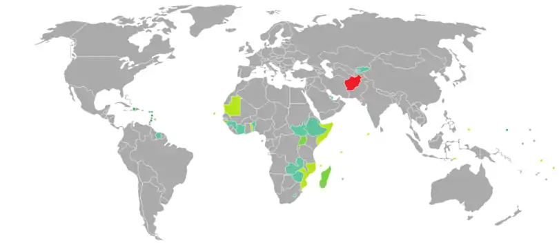 As of November 2020, Afghan citizens had visa-free or visa on arrival access to only 26 countries and territories, ranking the Afghan passport 106th in the world, or the least powerful in the world, according to the Henley Passport Index.[11]