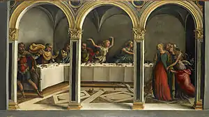 Agnolo and Donnino painted altarpieces and fresco decorations for a number of churches in Florence and its surroundings. They also painted portraits, mythological panels and religious works for domestic interiors. Their paintings are frequently compared to those of Lorenzo di Credi. Works like the Portrait of a Girl at the Gemäldegalerie in Berlin or Madonna and Child with Two Angels at the Walters Art Museum, Baltimore,[4] reflect the influence of contemporary Netherlandish painting. Agnolo was reportedly a pupil of Cosimo Rosselli. Donnino's son, Antonio (1497-1547), was also a painter.