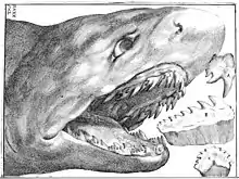 Scilla began to study fossils found in the hills of Sicily, sometimes accompanied by botanist Paolo Boccone. His only written scientific work is La vana speculazione disingannata dal senso ("Vain Speculation Undeceived by Sense", 1670).[3] The book was dedicated to the Sicilian nobleman Don Carlo di Gregorio, who founded the Accademia della Fucina (1639–1678) in Messina. In this work Scilla argues for a scientific explanation for fossils, as opposed to them being of fantastic origin or a test of faith from God. He also correctly identified the supposedly magical objects that were called glossopetrae, or "tongue stones", as the teeth of sharks. He was however not the first to do this. Nicolas Steno had made a similar claim about three years earlier but it is not known if Scilla had seen that work. Fabio Colonna in Dissertatio de glossopetris (1616) had burnt these fossils to show that they were made of lime, organic matter, rather than minerals.[4] The book included 29 drawings of fossils drawn from specimens by him and engraved using copper-plate by Pietro Santi Bartoli. The book was rediscovered by William Wotton of the Royal Society in 1696 and an English summary became widely available. Scilla was apologetic about being but an untrained artist and the style of writing was commented on by Wotton as lacking art. Scilla argued that his training gave him a painter’s eye with the ability to probe into nature and interpret things better, and depict nature without mediation.[5]