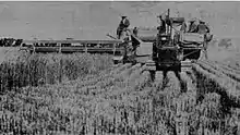 By the 1930s and 40s, agricultural production was dropping and the government sought technical solutions. Soils in central Mexico were considered exhausted by use and inadequate so that the government promoted agricultural development outside the traditional areas of cultivation, particularly in northern Mexico.[24] In the 1940s during the presidency of Manuel Avila Camacho, the Mexican government partnered with the U.S. government, and the Rockefeller Foundation to launch the so-called Green Revolution (1950–70).[25] Research facilities developed new strains of wheat, maize, beans, and other crops, to engineer a variety of desirable traits, such as disease resistance, high protein content. Sorghum, a new crop was introduced to Mexico during the era of the Green Revolution, which was used for animal fodder. Mexico expanded cattle production in this era, fed on sorghum.[26] Seeds and inputs of fertilizer and pesticides for irrigated agriculture were suited to Mexico's northwest, but required more capital than small-scale cultivators could afford. Mexico's agricultural output between 1950 and 1970 was "truly spectacular," but it was not long lasting, subsequently called "the birth place and burial ground of the Green Revolution"[27] Synthetic pesticides were applied to fields to control both insect infestations attacking plants, but also controlled insects that were disease vectors for humans. Synthetic fertilizers required adequate water so that its nitrogen would not be toxic to crops. The application of both pesticides and fertilizers were applied regularly. Pemex, Mexican national oil company, and Fertimex, the national company for the production of pesticides, particularly DDT, were integral in promoting large-scale, agribusiness dependent on these synthetic inputs. In order to be competitive, Green Revolution crops had to be cultivated and harvested by machinery, which meant that it was economically viable only with large-scale farms.[28]
