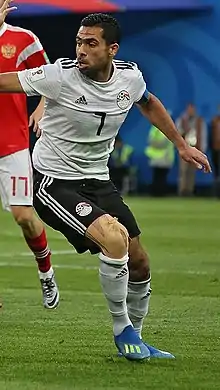 In May 2018, he was named in Egypt's squad for the 2018 World Cup in Russia.[17] He scored an own goal in the match against Russia.[18]
