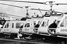 Air America Bell 205s being evacuated aboard USS Hancock, in 1975. - Consolidated PBY-5A Catalina