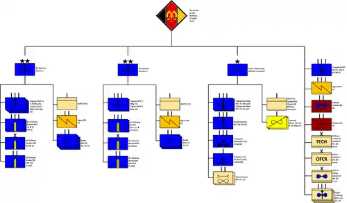 All fighter-bomber aircraft, transport aircraft, reconnaissance aircraft and transport helicopters were under the control of the FO FMTFK (roughly translates into: "Lead unit of the Frontal and Military air units", Führungsorgan der Front- und Militärtransportfliegerkräfte). The following units were part of the FO FMTFK: