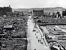 August 1945 began with further large-scale raids against Japanese cities. On the 1st of the month, 836 B-29s staged the largest single raid of World War II, dropping 6,145 tons of bombs and mines. The cities of Hachiōji, Mito, Nagaoka and Toyama were the main targets of this operation; all four suffered extensive damage and 99.5 percent of buildings in Toyama were destroyed.[157][158] The cities of Imabari, Maebashi, Nishinomiya and Saga were attacked on 5 August.[158] These raids had also been preceded by propaganda leaflets and radio broadcasts from Saipan warning that the cities would be attacked.[153]