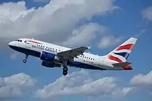 The A318 was born out of mid-1990 studies between Aviation Industries of China (AVIC), Singapore Technologies Aerospace, Alenia and Airbus on a 95- to 125-seat aircraft project. The programme was called the AE31X, and covered the 95-seat AE316 and 115- to 125-seat AE317.[8] The former would have had an overall length of 31.3 m (102 ft 8 in), while the AE317 was longer by 3.2 m (10 ft 6 in), at 34.5 m (113 ft 2 in).[33] The engines were to be supplied from two Rolls-Royce BR715s, CFM56-9s, or the Pratt & Whitney PW6000s;[8][33] with the MTOW of 53.3 t (118,000 lb) for the smaller version and 58 t (128,000 lb) for the AE317, the thrust requirement were 77.9–84.6 kN (17,500–19,000 lbf) and 84.6–91.2 kN (19,000–20,500 lbf), respectively.[33] Range was settled at 5,200 km (2,800 nmi) and 5,800 km (3,100 nmi) for the high gross weights of both variants.[33] Both share a wingspan of 31.0 m (101 ft 8 in)[33] and a flight deck similar to that of the A320 family. Costing $2 billion (€1.85 billion) to develop, aircraft production was to take place in China.[8]