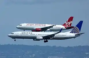 Airbus claimed the 737-300 burns 35% more fuel and has a 16% higher operating cost per seat than the V2500-powered A320.[61] A 150-seat A320 burns 11,608 kg (25,591 lb) of jet fuel over 3,984 km (2,151 nmi) (between Los Angeles and New York City), or 2.43 L/100 km (97 mpg‑US) per seat with a 0.8 kg/L fuel.[62] Its wing is long and thin, offering better aerodynamic efficiency because of the higher aspect ratio than the competing 737 and MD-80.