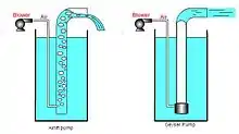 - Gas lift – Raising a fluid by introducing bubbles of gas into the outlet tube
